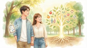若い男女が将来のライフプランを考える