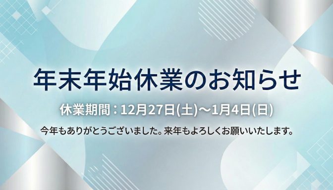 誠に勝手ながら、下記の期間を年末年始休業とさせていただきます。